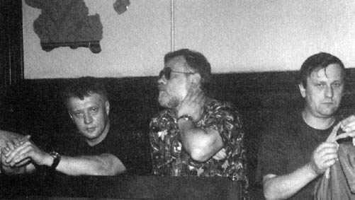 Oskarżeni Krzysztof Jasiński (pierwszy z lewej), w środku Zbigniew Wróbel (pirotechnik w brygadzie antyterorystycznej), z prawej Andrzej Rau
